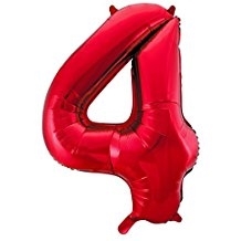 GLOBO NUMERO 4 PLATA-ORO-AZUL-NEGRO-ROJO-ROSA